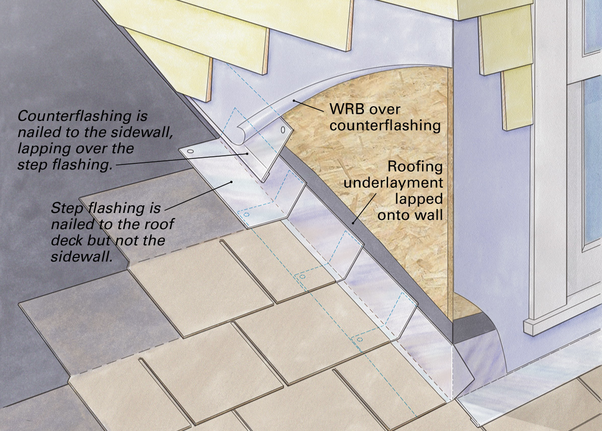 This may temporarily slow water but doesn’t fix the underlying issue.Replacing shingles without addressing flashing